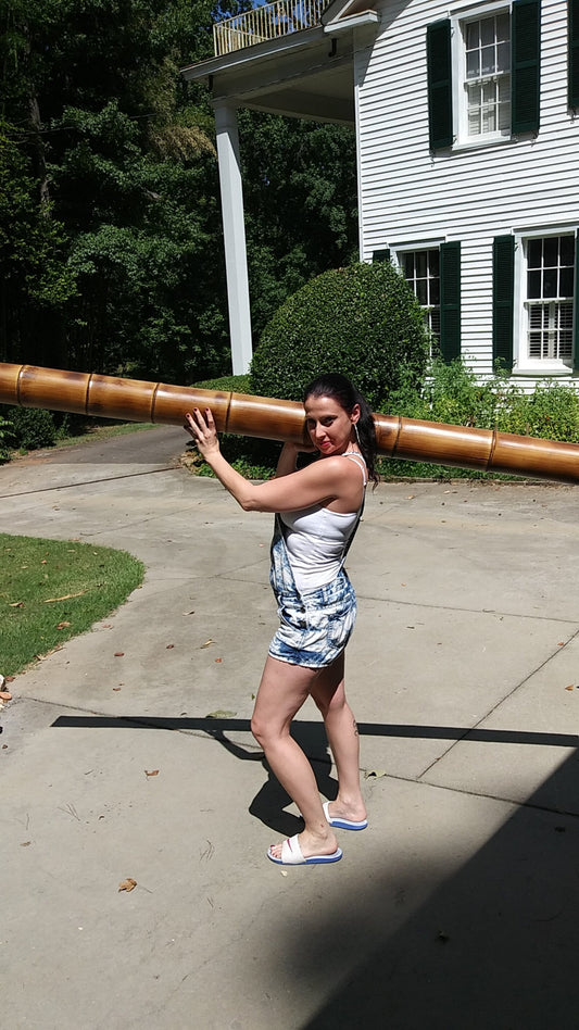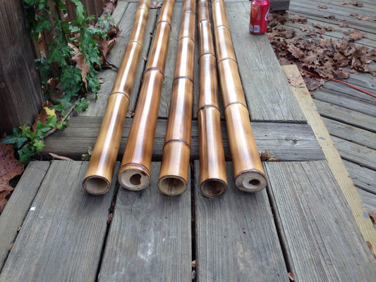 The Flaming Bamboo Company produces the finest bamboo for rope suspension. Their shibari grade Moso & Guadua bamboo is flame cured and cut node-to-node for the highest strength possible. No two pieces of bamboo are alike, so the flame curing process will produce a finish unique to each piece, making them one of a kind.