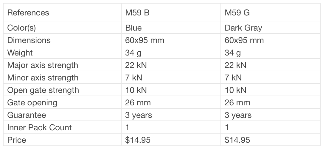 - Carabiner size and strength-to-weight ratio are optimized due to the H-shaped cross-section