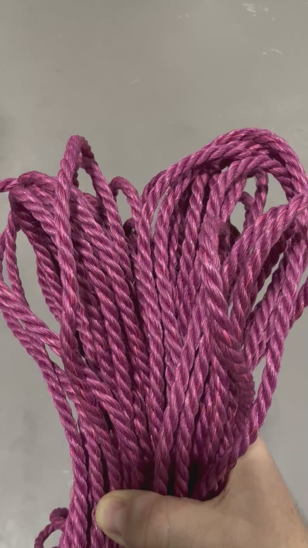 -(3) 8M+ lengths of pink conditioned 6mm tossa jute rope with a subtle UV-reactive pink tracer thread and a sparkly, shimmery, conductive pink metallic thread added. We call these options Unicorn Style.