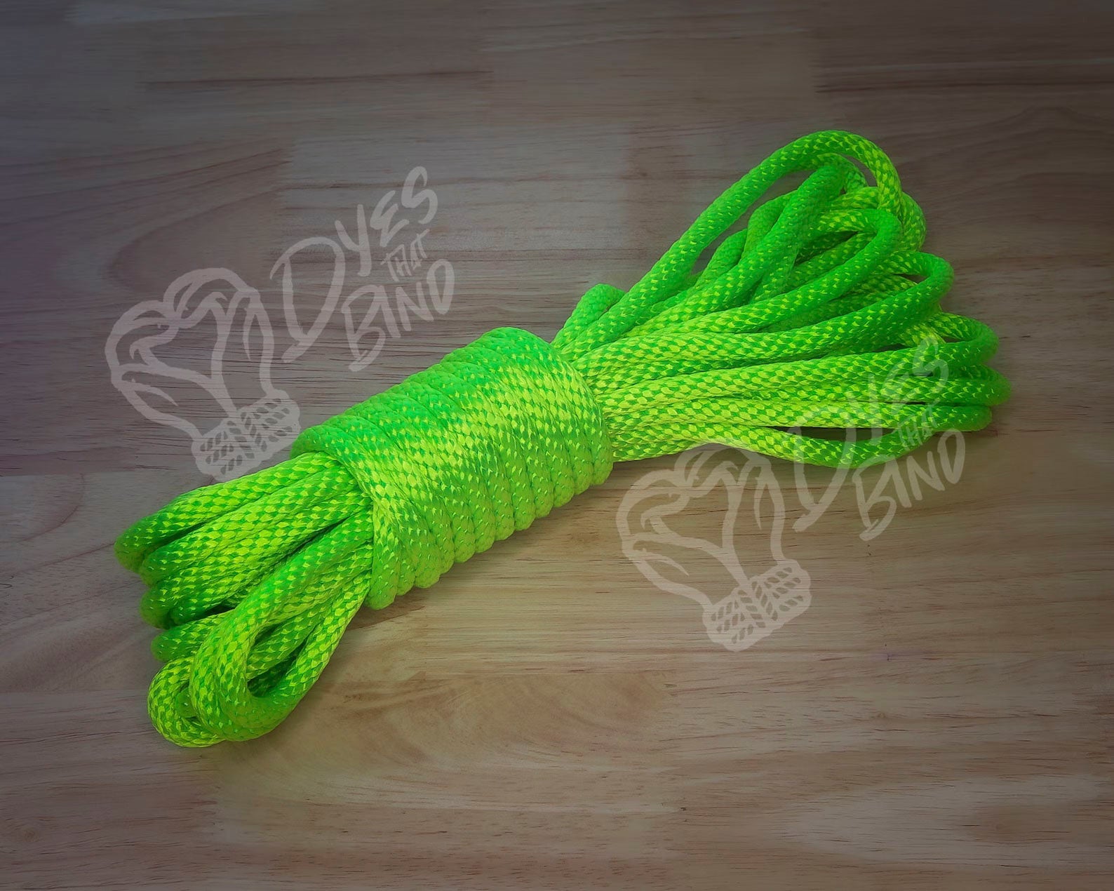 One of the go-to colors for UV reactive rope, this neon green pops under natural light and glows under black light.