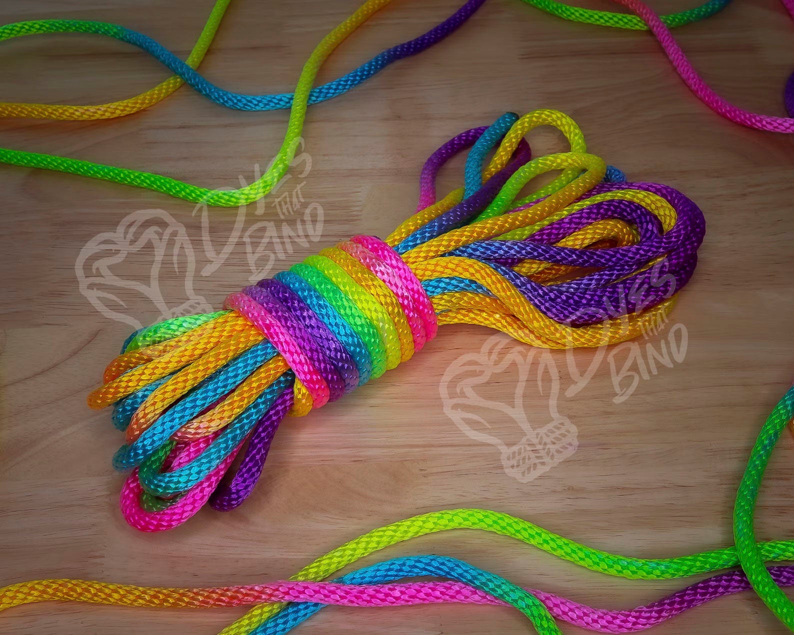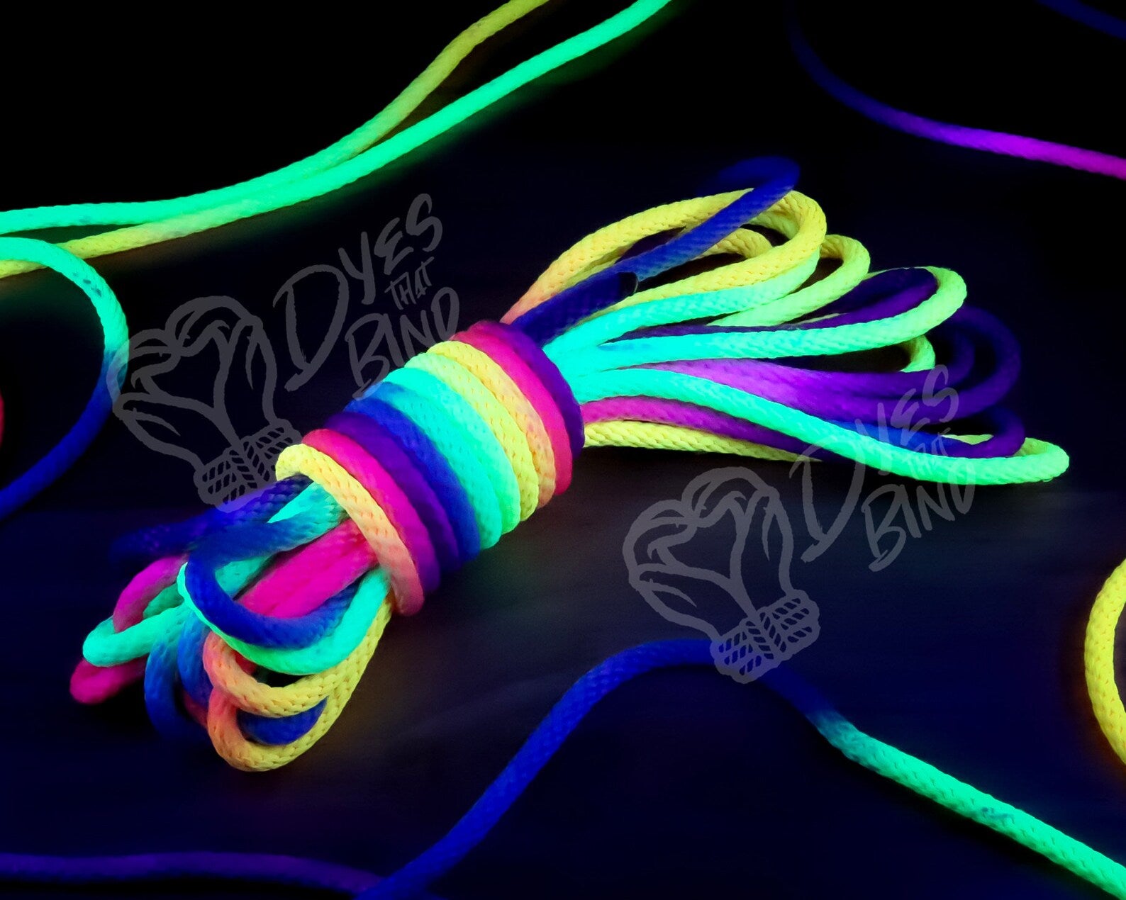 This blacklight-reactive variation of rainbow rope features a vibrant and cheerful selection of fluorescent colors that will illuminate your rope experience in natural lighting and UV environments.