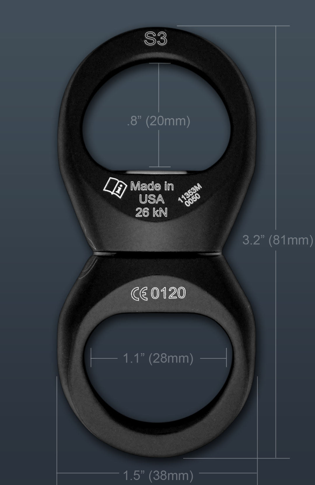 The holes on this swivel are smooth enough to accept your favorite sling or runner in addition to your favorite carabiner. It is rated at 26kn and, like all Rock Exotica products, is made in the USA.
