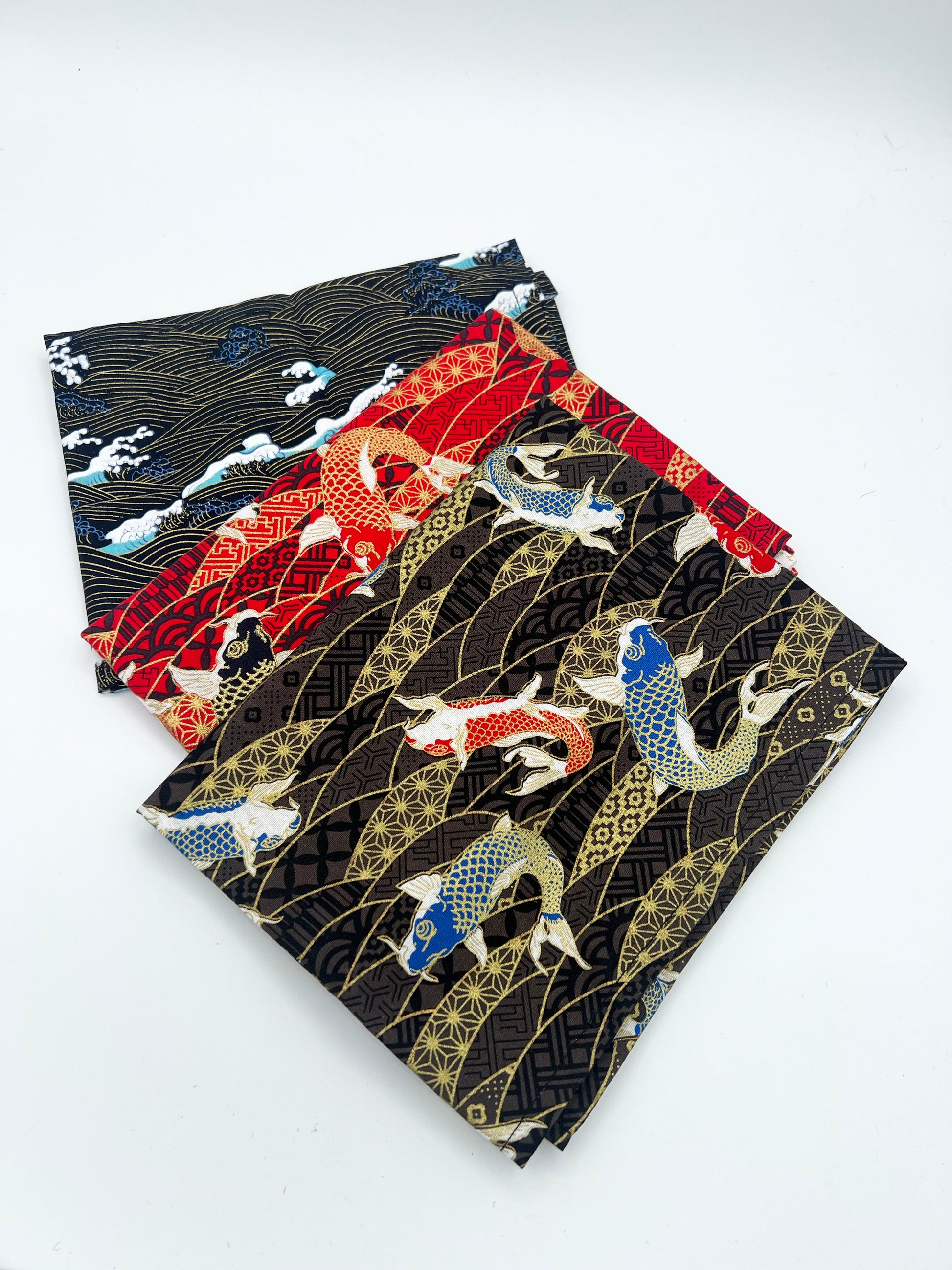 Tenugui is a traditional Japanese cloth that serves many purposes. In the world of shibari they can be blindfolds, support the head or limbs, used as a hair tie, for cleanup, or for whatever creative use you can come up with.